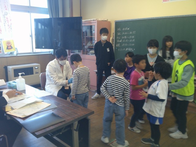 来年度入学予定者の検診を行いました。引率や検診補助に5年生が活躍してくれました。