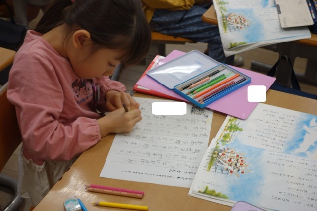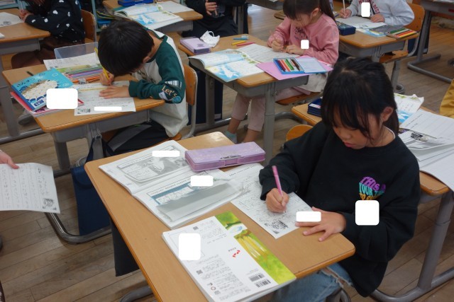国語科「くじらぐも」の学習も終盤です。本文や挿絵をもとに思い浮かべたことを基に、「子供たちに」になりきって、お別れするくじらに宛てた手紙を書きました。