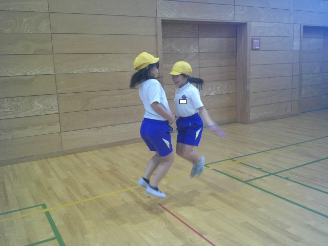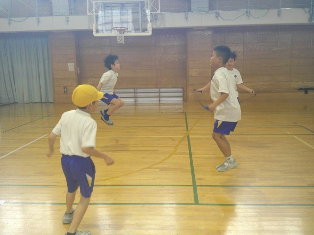 縄跳びでは、できる技の跳ぶ回数を増やしたり、友達からアドバイスしてもらってできる技を増やしたりしています。