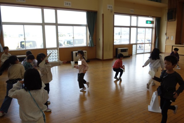 1年1組で「居住地交流学習」を行いました。「紙飛行機」を通して、交流をしました。