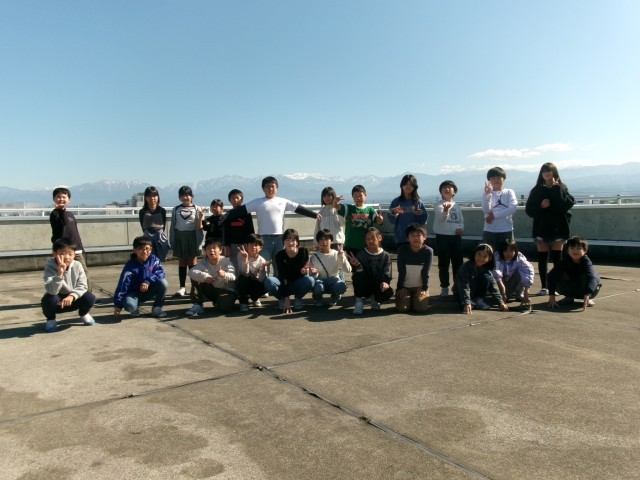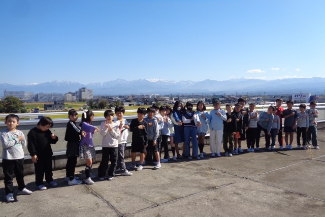 「初冠雪」を記録した立山連峰をバックに、学級ごとに写真を撮りました。
