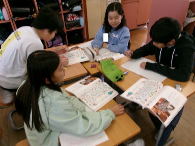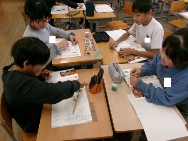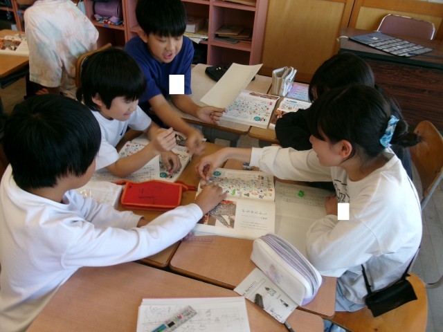 都道府県の漢字を使って文を作り、すごろくのマスとして活用しました。漢字をたくさん使い、丁寧な文に仕上げました。すごろくも班のみんなと仲良く活動に取り組んでいました。