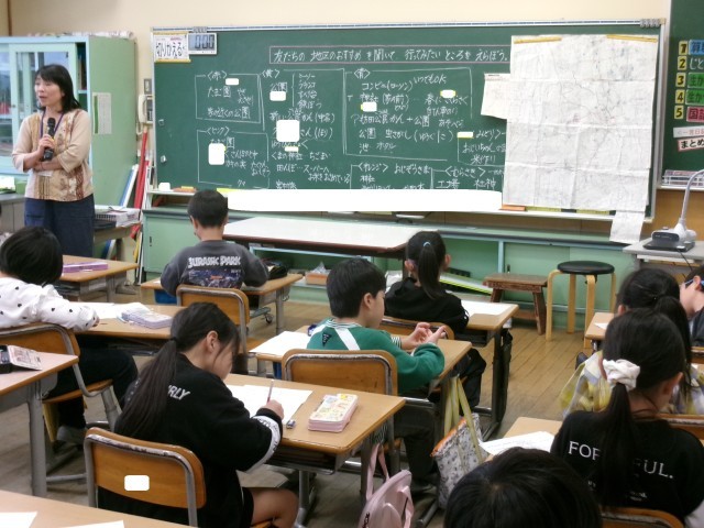 子供たちは、自分の地域の特徴やみんなに知らせたいものを発表した後に、興味、関心をもって、もっと調べたいことや行ってみたい場所などについて話し合いました。そして、実際に現地へ行って調べたい、聞いてみたいという思いを高めていました。