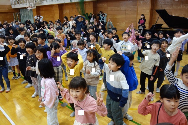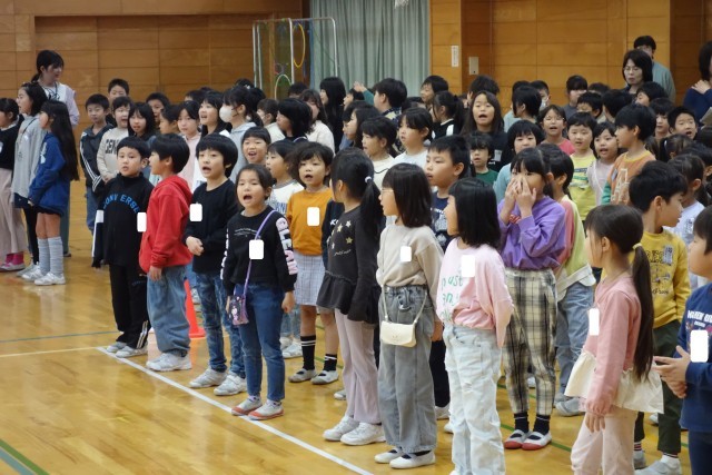 秋の児童集会を楽しむ、1年生の子供たちの素敵な表情。