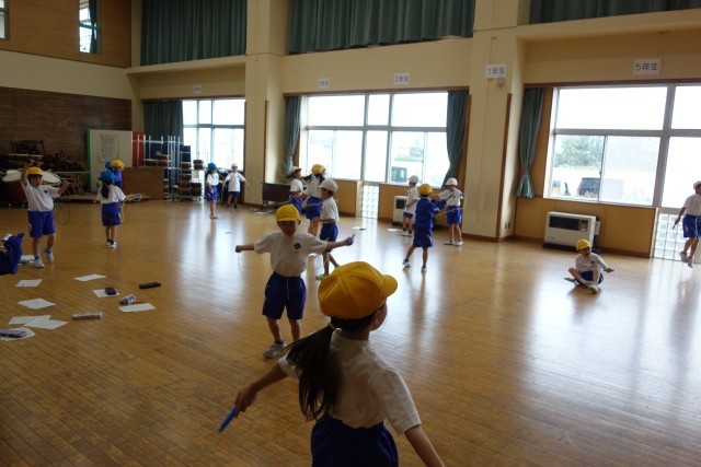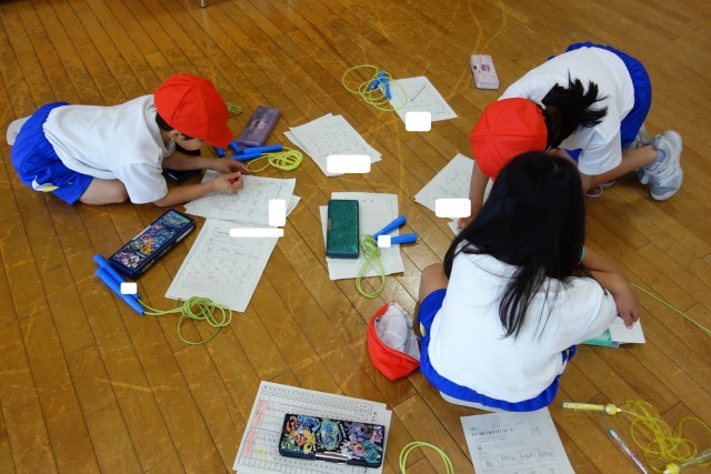 鉄棒の練習エリアが空くまでは、縄跳びを練習します。2学期に入って進めてきた縄跳びカードもかなり進んだようです。