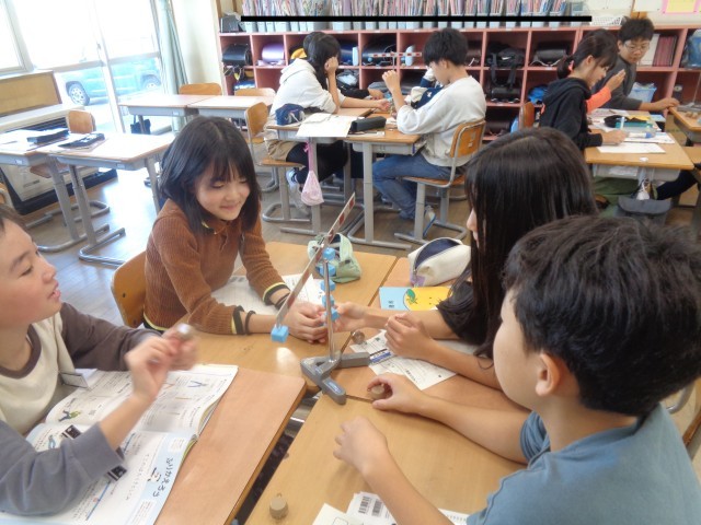 理科「てこのはたらきとしくみ」では、てこが水平に釣り合うための条件を実験を通して考えました。