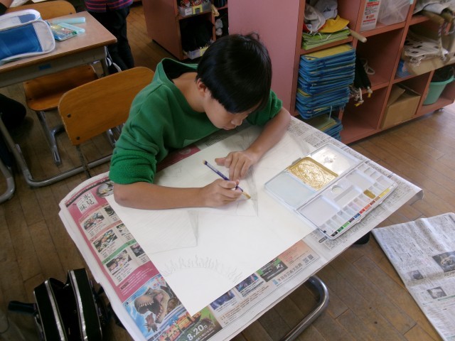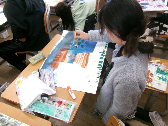 作品が完成に近づいてきました。ぼかしたり、グラデーションを意識したりすることで味のある作品に仕上がってきています。