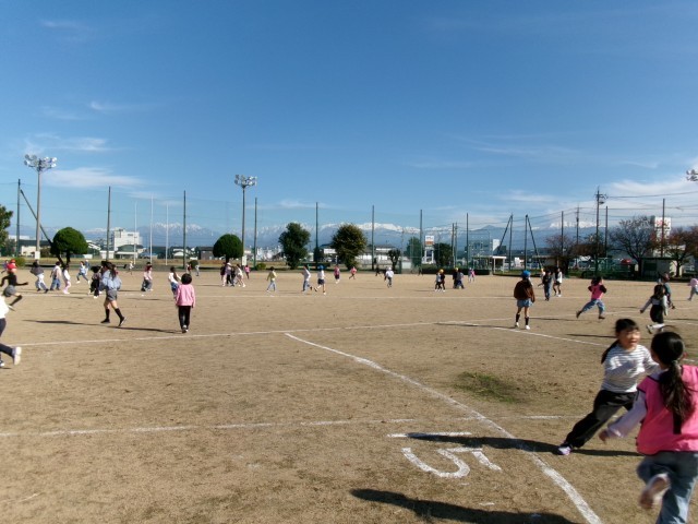 運動委員会によるイベント「逃走中」に、低学年の子供たちが参加しました。この日を楽しみにしていた子供たちです。秋晴れの下、気持ちのよい汗を流しました。「ハンター」に捕まらなかった子供たちに拍手!