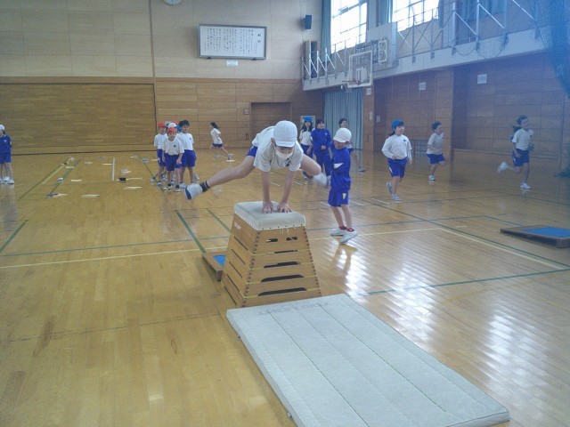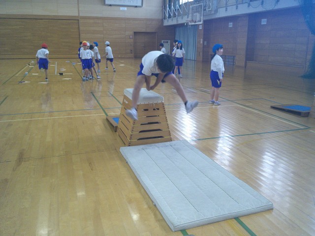 開脚跳びでは、手の付き方や着地の仕方に気を付けながら意欲的に学習を進め、きれいに跳び越すことができる子供が増えてきました。