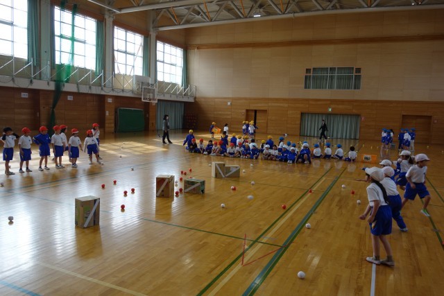 1年生 ボールなげゲーム ~1・2組交流戦~