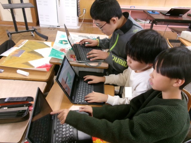 できあがったみんなの作品を見合いました。みんながどのような工夫をしているのかを作品を見て考え、伝えることができました。工夫を見つける力を高めています。