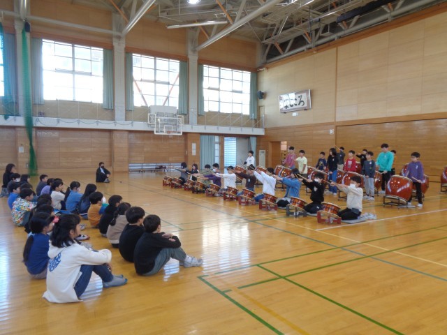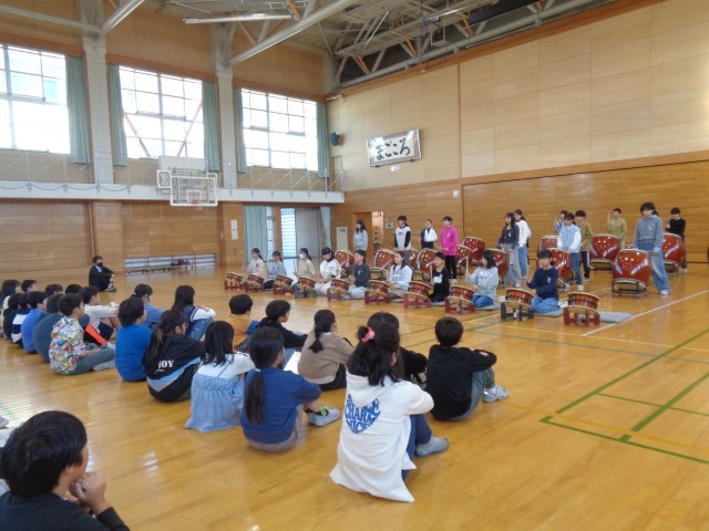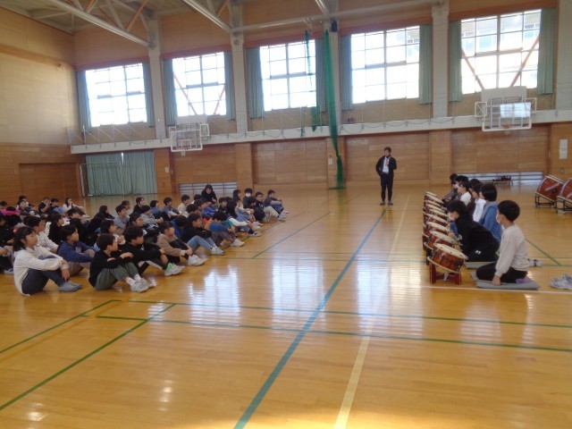 今日の総合的な学習の時間では、4年生に大地・大祭の演奏を聴いていただきました。