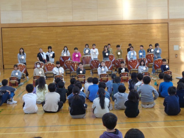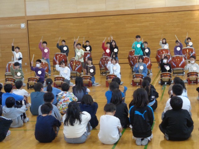 宮野清流太鼓「大地」「大祭」を、6年生から4年生へ受け継ぐ時期となりました。6年生の力強く、迫力のある演奏を改めて聴き、演奏への憧れと自分自身の思いをより強くしました。