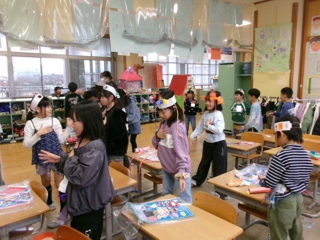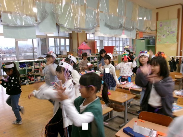 1組も「わっかでへんしん」の自慢の衣装が完成しました。衣装を身に着けて、楽しそうに踊る子供たちです。