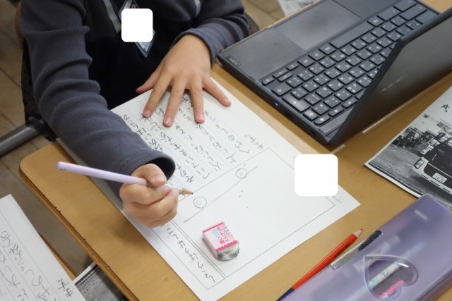 「じどう車くらべ」の学習経験をもとに、今度は説明する文章を書きます。今日は、本の情報を手掛かりに、書き方を確かめました。