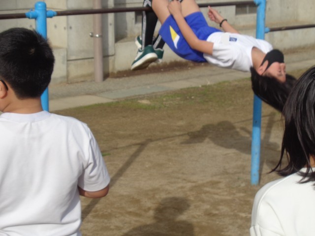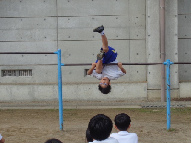 鉄棒の学習が終盤に入り、子供たちの意欲はますます高まっています。一人一人が自分のめあてをもち、それに向かって勇気を出して挑戦する子供、また、仲間の挑戦を支えようと協力する子供など、すてきな姿が多く見られました。