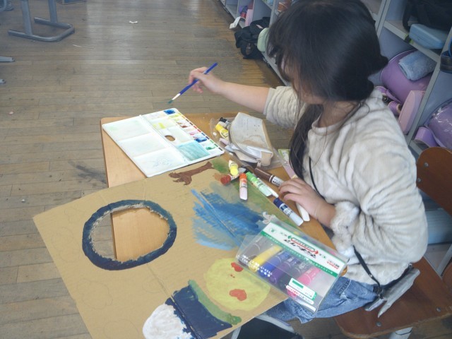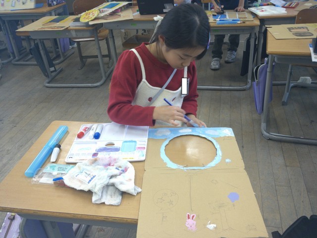 3年生 図画工作科「顔を出したらなんだかわくわく」の学習