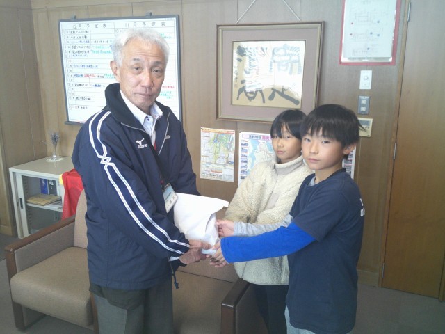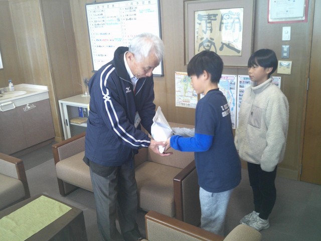 先月集めた赤い羽根共同募金を富山市社会福祉協議会の所長さんにお渡ししました。