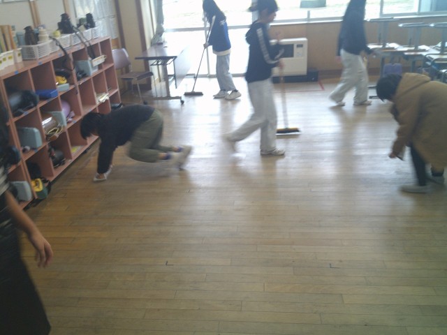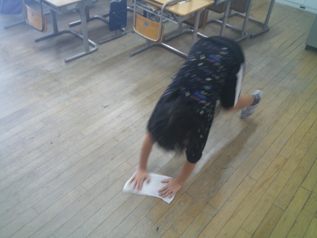 掃除の時間。自分の役割をしっかりと果たし、きれいにしよとする子供たちの姿がきらりと光ります。