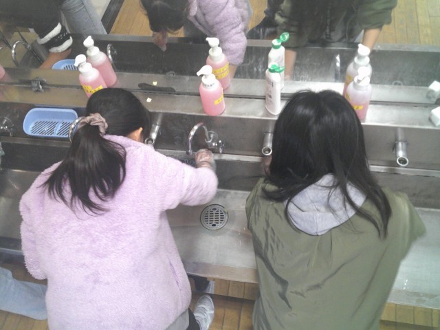 家庭科では、身の回りをきれいにする方法について学習しています。今日は、よごれに合ったそうじに取り組みました。よごれによって、洗剤や道具等が必要であることに気付きました。