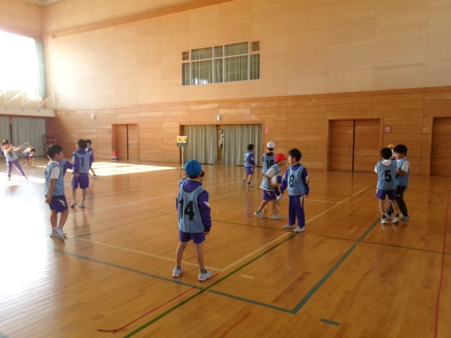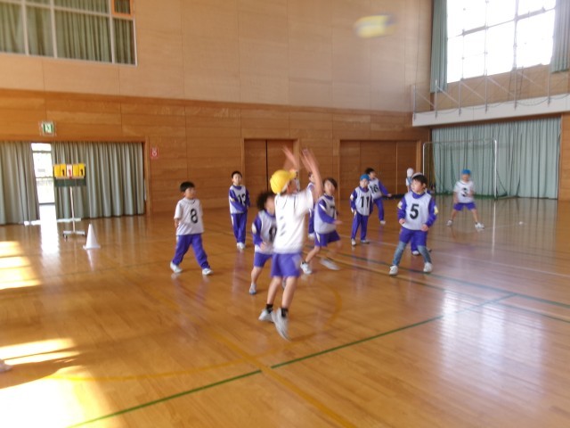 今、体育では、ボールを使って基本の運動遊びに取り組んでいます。また、ボールに慣れる運動を通して「ドッジボール」を楽しんでいます。ちょっと、変わったドッジボールで、キャプテン制を取り入れたり、バレーボールのような得点ゲームにしたりしています。