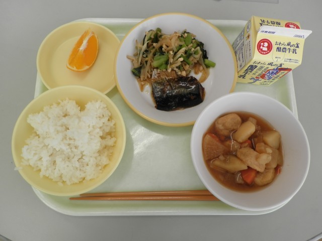献立名:ごはん 牛乳 にしんの照り煮 小松菜と大豆そぼろの和え物 おでん あいか