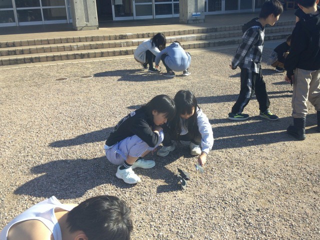 今日は、待ちに待った晴天になり、太陽の光を虫めがねで集める実験に取り組みました。