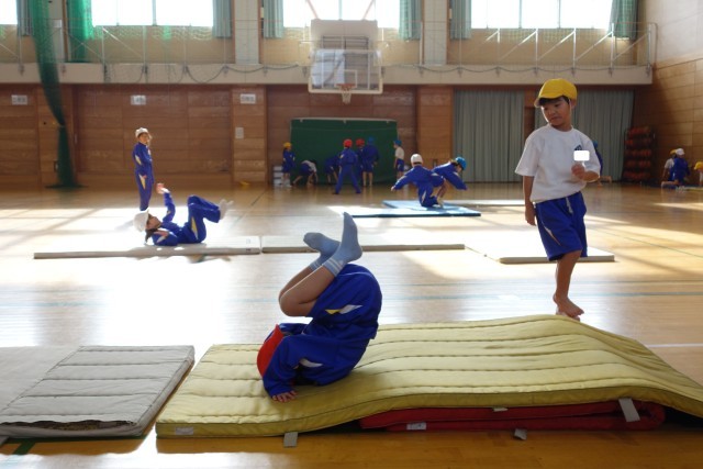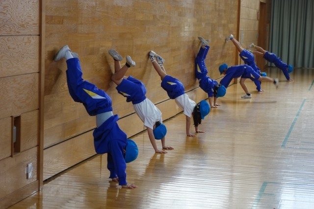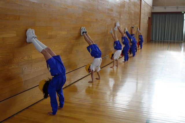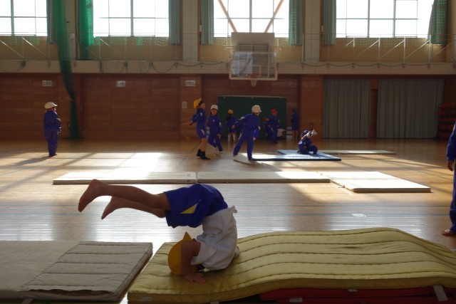 体育科の学習の様子です。練習をして、技に磨きをかけます。