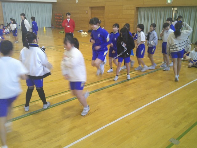 今までの練習の成果を発揮するなわとび大会が行われました。5年生の子供たちは、各自の目当ての達成に向かって取り組んでいました。