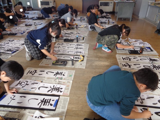 書写の時間では、「美しい空」に取り組んでいます。中心を意識しながら、文字の大きさや字形、はらいなど、自分の目当てをもって書いています。冬休みには、家庭で継続して取り組んでほしいと思います。