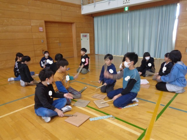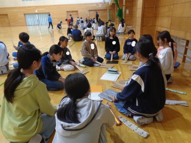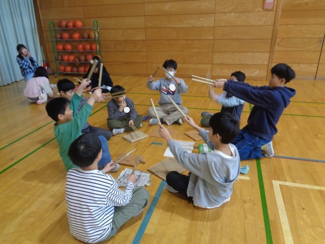 宮野清流太鼓「大地」「大祭」、一人一人のパートや役割が決まり、6年生と初めての練習会を行いました。6年生の真剣に教える態度に応えようと、4年生も熱心に取り組みました。宮野伝統を受け継ぐ心と態度、技能をしっかりと高めていきたいと思います。