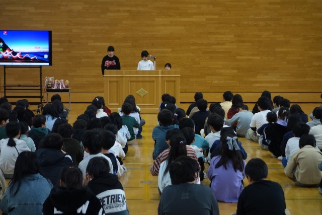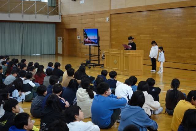 1・3・5年生の代表児童が、2学期の振り返りや来学期への意気込みを堂々と述べました。真剣に話を聞く宮野っ子の様子が見られました。