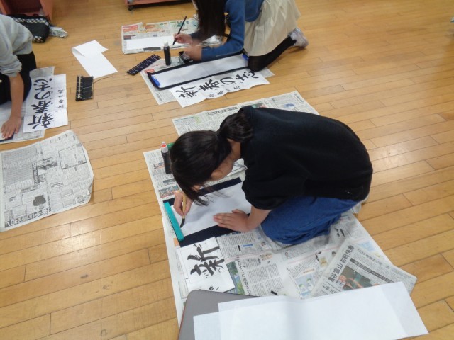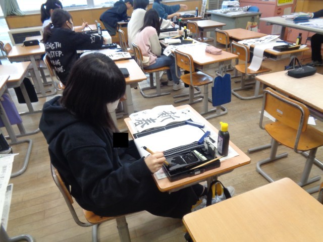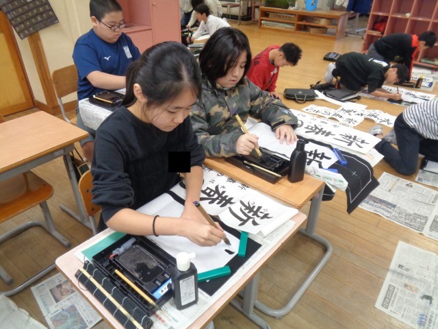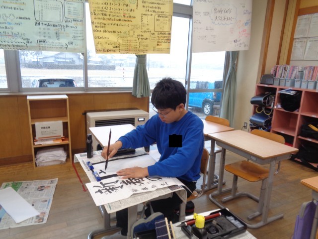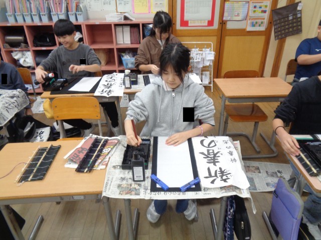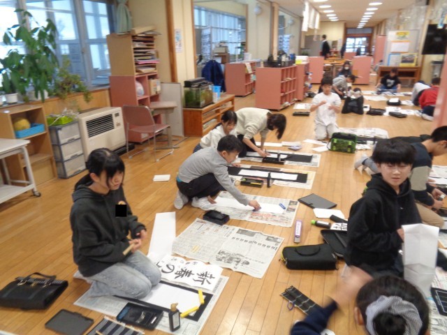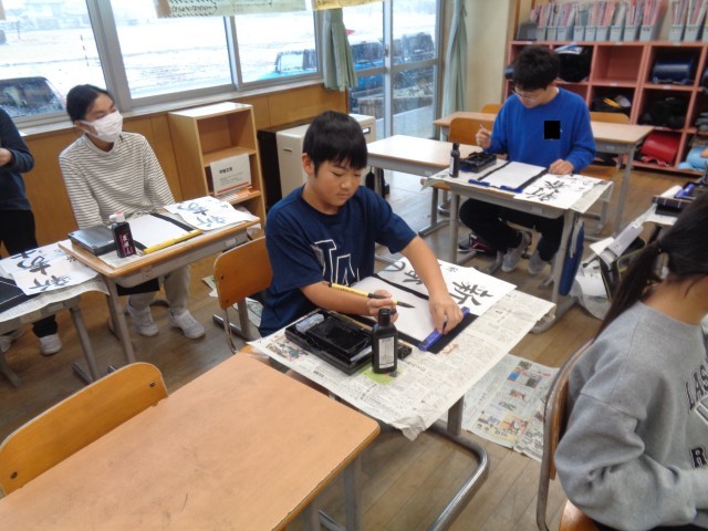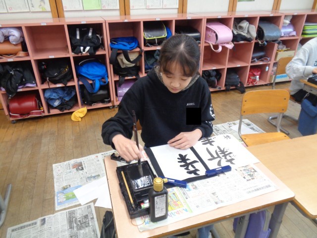 今日から3学期がスタートし、書初め大会が行われました。2学期の練習や冬休みの練習の成果を発揮していました。