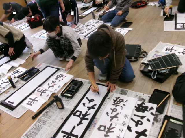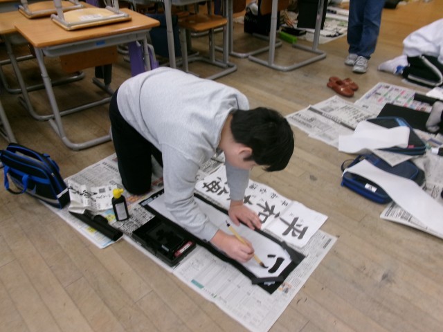 今日の書初大会では、冬休み中に頑張った成果を出そうと、真剣に取り組みました。丁寧な字を書くことができ、子供たちは嬉しそうでした。