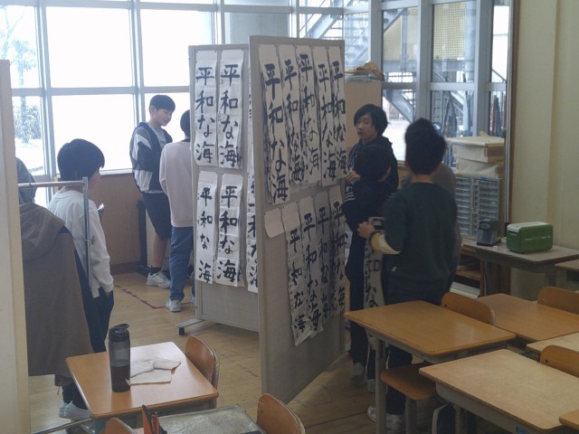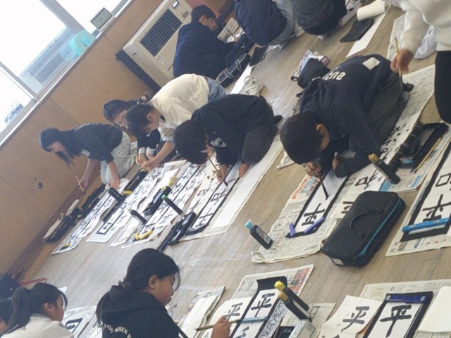 3学期初日は書初大会の日です。2学期の終わりから練習を積み重ねた成果を一人一人が発揮していました。