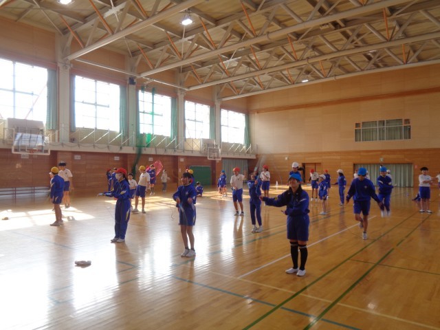 今学期最初の体育は、短縄跳びを行いました。より多くの技が習得できるように頑張っています。