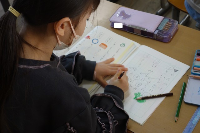 国語科の学習の様子です。一文字付け足すと、別の言葉に変身。どんな言葉になるのか考え、きちんとノートにも書くことができました。少しずつ語彙を増やしていきましょう。