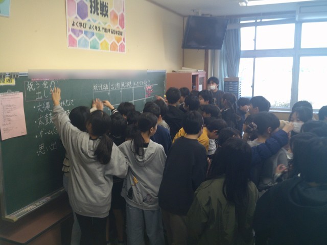 祝う会でどのような出し物をしたいかを出し合い、その後、自分の役割を決めました。少しずつ準備を進めていきます。