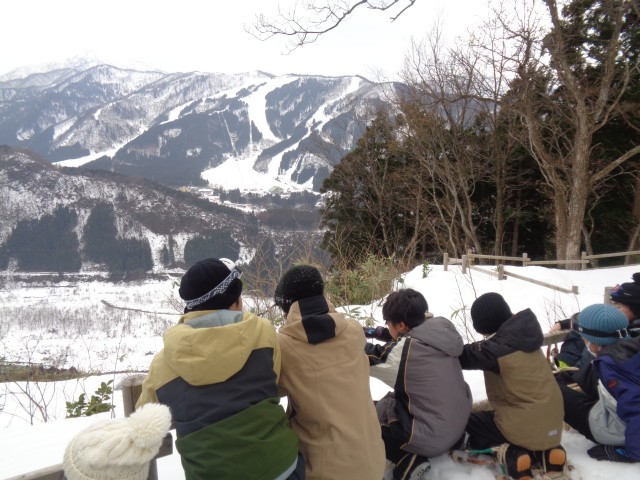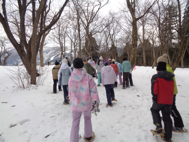 引き続き、雪の活動の様子です。かんじきを履いて立山青少年自然の家の敷地内を歩きました。