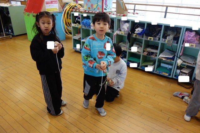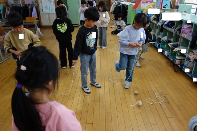 生活科の学習の様子です。子供たちは、こま回しの経験はないようでした。回せるようになりたいと思い、友達の様子を見たり、教え合ったりして取り組む様子が見られました。