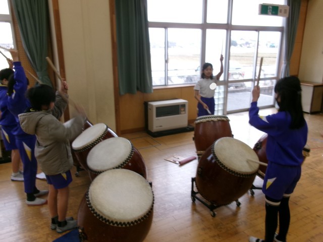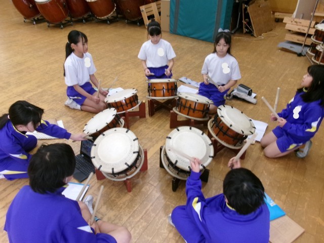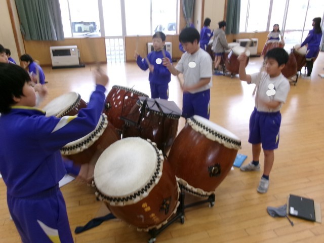 宮野清流太鼓「大地」「大祭」を、4年生だけで練習しました。6年生に教えてもらったこと、冬休みに一人で練習したことなどを思い出しながら取り組みました。振り返りでは、「みんなで合わせられるようにもっと練習したい」という意見や感想が多く出ました。