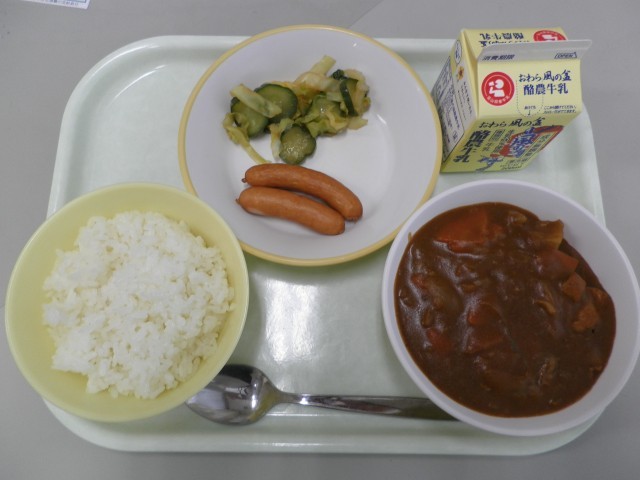献立名:ハヤシライス あらびきウインナー グリーンサラダ 牛乳