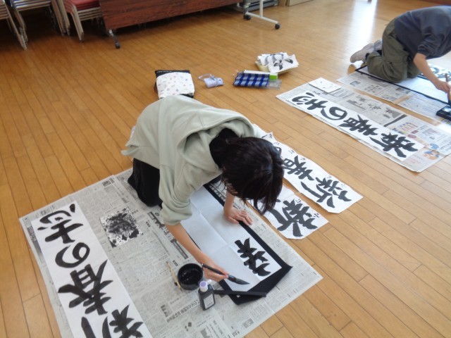 今日は、県の書初め大会に提出する作品を代表二名が書きました。集中して丁寧に書いていました。