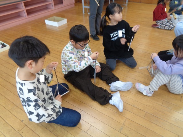 中には初めて鳴らす楽器もあり、夢中で音を楽しむ様子の子どもたちでした。
