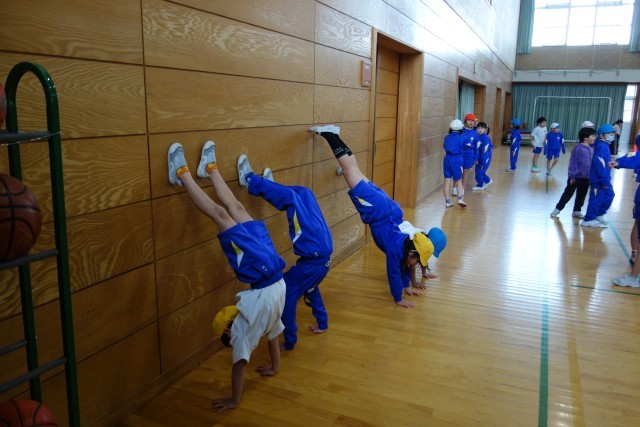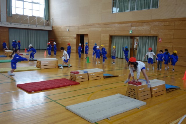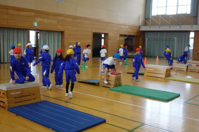 体育科の学習の様子です。それぞれの子供たちが身に付けたい技能の習得に向けて、必要な練習を自己選択して学習に取り組んでいます。