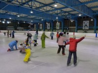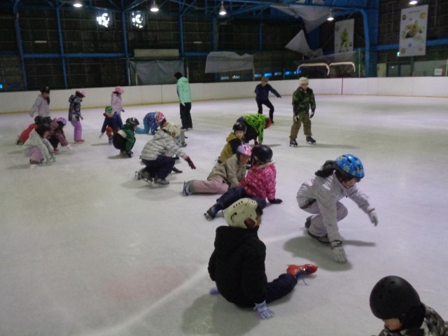 転んだ時に立ち上がる練習や足の形を整えて滑る練習をしました。