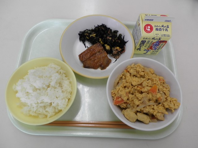 献立名:ごはん 牛乳 にしんのみぞれ煮 ひじきとコーンのソテー 卵とじ