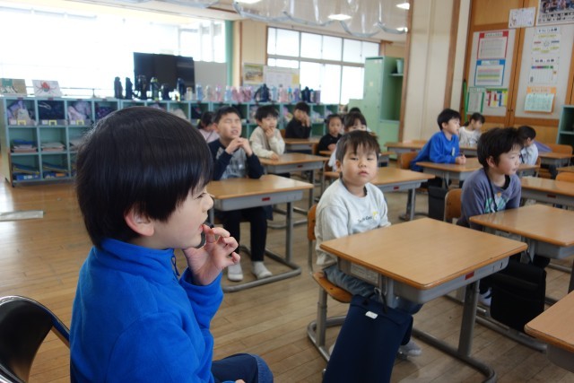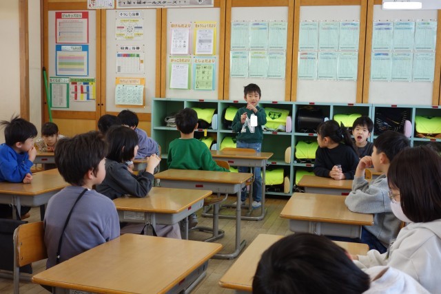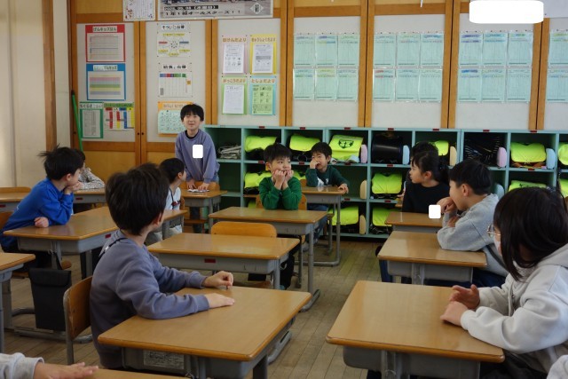朝の聴き合いの様子です。今日の話題は「麻酔を使って歯を抜いたこと」です。「麻酔って何?」「え、痛そう!」「歯は抜いてないけど、歯科に行っているよ」子供たちの率直な反応が見られました。