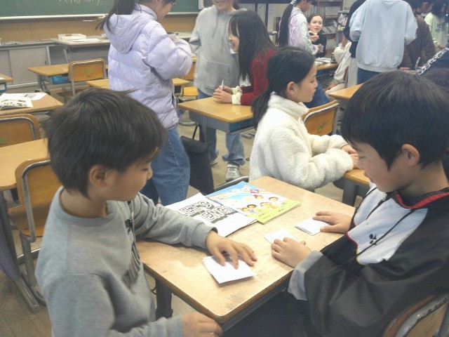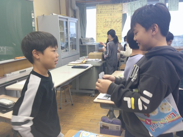 自分で作ったクイズを友達と互いに出し合う活動に取り組みました。
