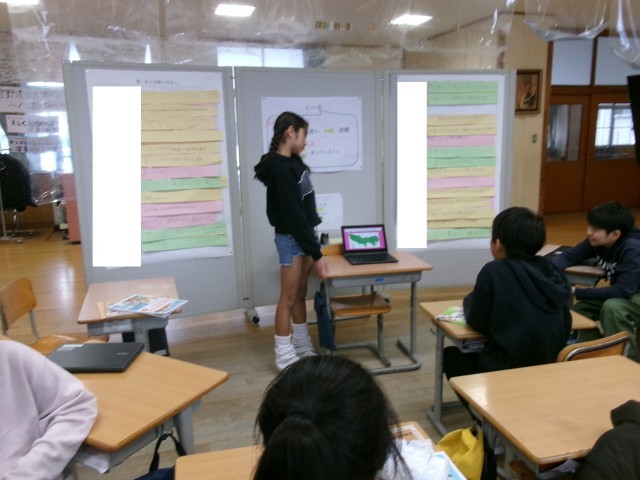 おすすめの場所をみんなに紹介しました。今まで工夫して作ってきたスライドに自信をもって発表する姿が見られました。